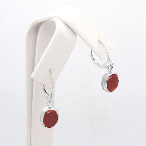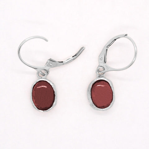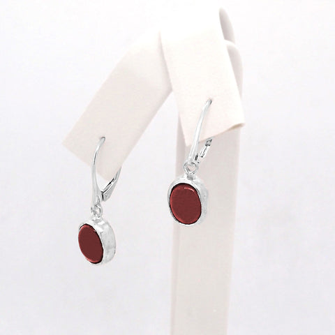 * These Carnelian cabochon dangle earrings are set on a bezel with a safe lever back.